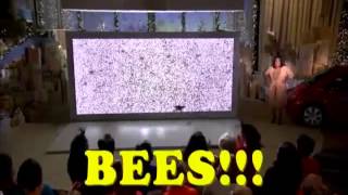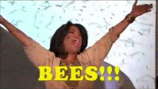 Oprah gives away bees. Oprah releases a giant box of bees onto her audience. The audience is screaming and cheering as the killer bees are attacking and ...